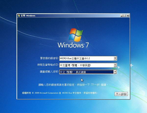 先安裝Windows 7系統軟體